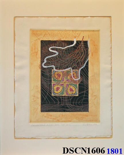 Intaglio and chine colle. Multiple colors. Image 12" x 9" on 15" x 12" Copperplate Deluxe paper. Signed lower right.Artwork Details