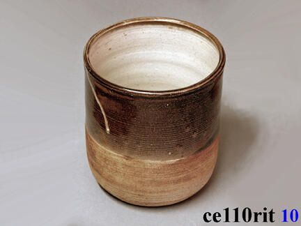 Stoneware. Unglazed bottom, clear brown glaze on top. 7" x 6 1/2" x 6 1/2".Made/Created