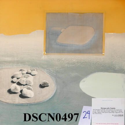 Silverpoint, graphite, colored pencil, lithograph crayon and varnish. Yellow, blue and gray. Image bleeds to the edge of 16" x 16" white ges'soed Basingwerk Heavyweight paper. Signed lower right.Artwork Details