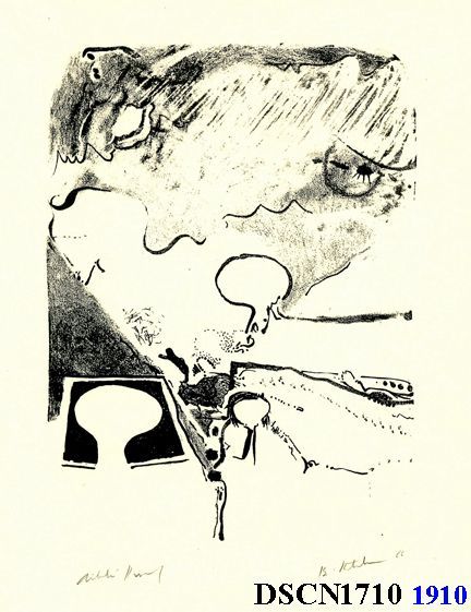 Lithograph. Yellow, green, red, purple and black. Image 8" x 5 1/2" on 10" x 8" Rives BFK paper. Signed lower right.Made/Created