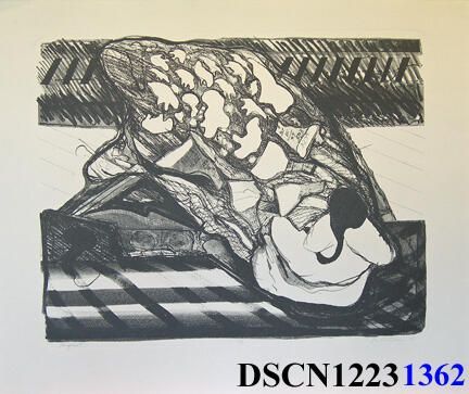 Lithograph. Black and white. Image 15" x 19" on 20" x 24" Rives BFK paper. Signed lower right.Type of Print