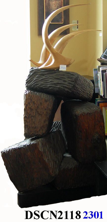 Light oak, burnt cedar. Object approximately 54" x 30" x 27". Brass nameplate applied 2007. On loan to Central Washington State University since 1964.Type of Sculpture