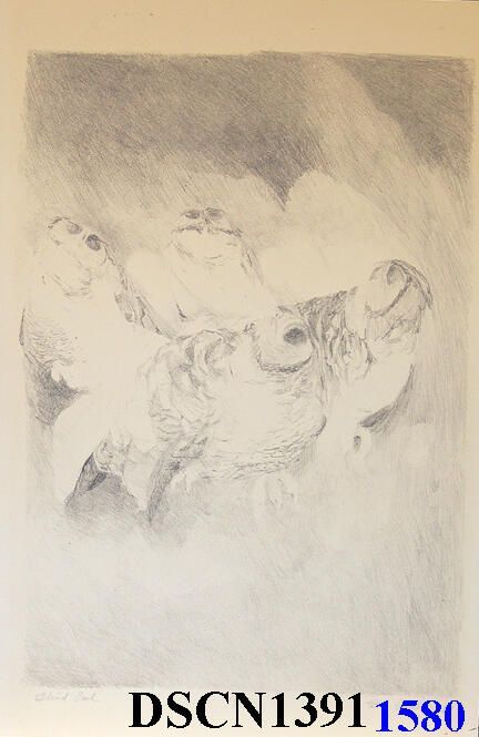 Lithograph. Black and white. Image 14 1/2" x 10" on 17" x 11" Hot Press Cover Basingwerk Parchment paper. Signed lower right.Type of Print