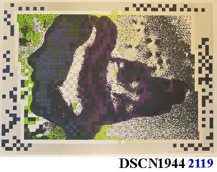 Lithograph offset. Green, black, gray, purple, and blue. Image 20 1/2" x 28 1/2" on 22" x 30" white Arches Cover paper. Printed by Robert W. Franklin.Artwork Details