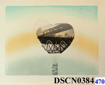 The Henry Gallery Association commissioned me to produce a print. As the deadline was coming, I decided to use a more experimental idea. It was a hit! The bridge image and the lines crossing the imagery are from my drawings and video art work that were gaining momentum in 1973. Printing was a complex mix of lithography, relief and Chine Colle from a single etched zinc plate. Backstory: Late in 1973 I was awarded a commission to produce an edition of an original print for the Henry Gallery Association. The print was to be a new member benefit. They intended it to be an enticement to get new members. It was a windfall for our family not only for the money, but it also meant I would gain exposure to art collectors. My prints could become part of the art collections of some Seattle art mavens and some newcomers to the area. Making this print was a journey with a rocky beginning but a happy ending. I began work in November with a clear idea of what I wanted - a flowering shape surrounded by heavily striated, raster-like texture and, inside the shape, a target-heart. For etching the striations, I used a piece of corduroy fabric larger than the plate and impressed it in soft ground on zinc. Being zinc, it did not take long to etch in the corduroy pattern. I stopped-out places where I anticipated putting in the target-heart image. Then I imposed a tree-like shape enclosing it, recalling my stem-like forms with bulbous tops of tree-hugging work of ten years ago. It did not work. I gave up the target-heart shape and adopted my bridges theme. The bridge image is of two-color lithograph from an aluminum plate, printed on a Japanese paper. I tore out the image, ripping around a metal template to create the shape. As I would have to print-and-tear as many lithographs as there would be prints in the edition, the template assured that all the torn free-form shapes would be alike. These would be chine-colle’d into the paper when the inked zinc plate was printed. Doing this process laminates the Japanese paper permanently to the main sheet of paper. Still, it did not go well, and it would go from bad to worse until nearly next year’s January 31 deadline. The lesson I would learn from this is I do not work well on commissions – art on demand as it were. My most creative work seems to come out of thin air, and never motivated from paid commissions. While it did not seem like it at the time, the prints would eventually turn out well. Strangely, even the early trial proofs won prizes at the International Invitational of the Philadelphia Print Club and, almost simultaneously, the Springfield Arts Center! A footnote to the Philadelphia award would come forty-two years later when I would receive a Membership at the Philadelphia Art Museum because my print is in the Print Club’s holdings – a nice perk, but I had stopped flying by this time.