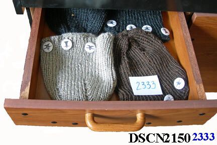 Hand-knitted caps with Halfwood Press buttonsDescription