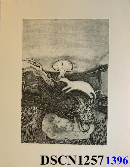 Intaglio. Black and white. Image 21" x 14 1/2" on 28 1/2" x 22" Rives BFK paper. Signed lower right.Artwork Details