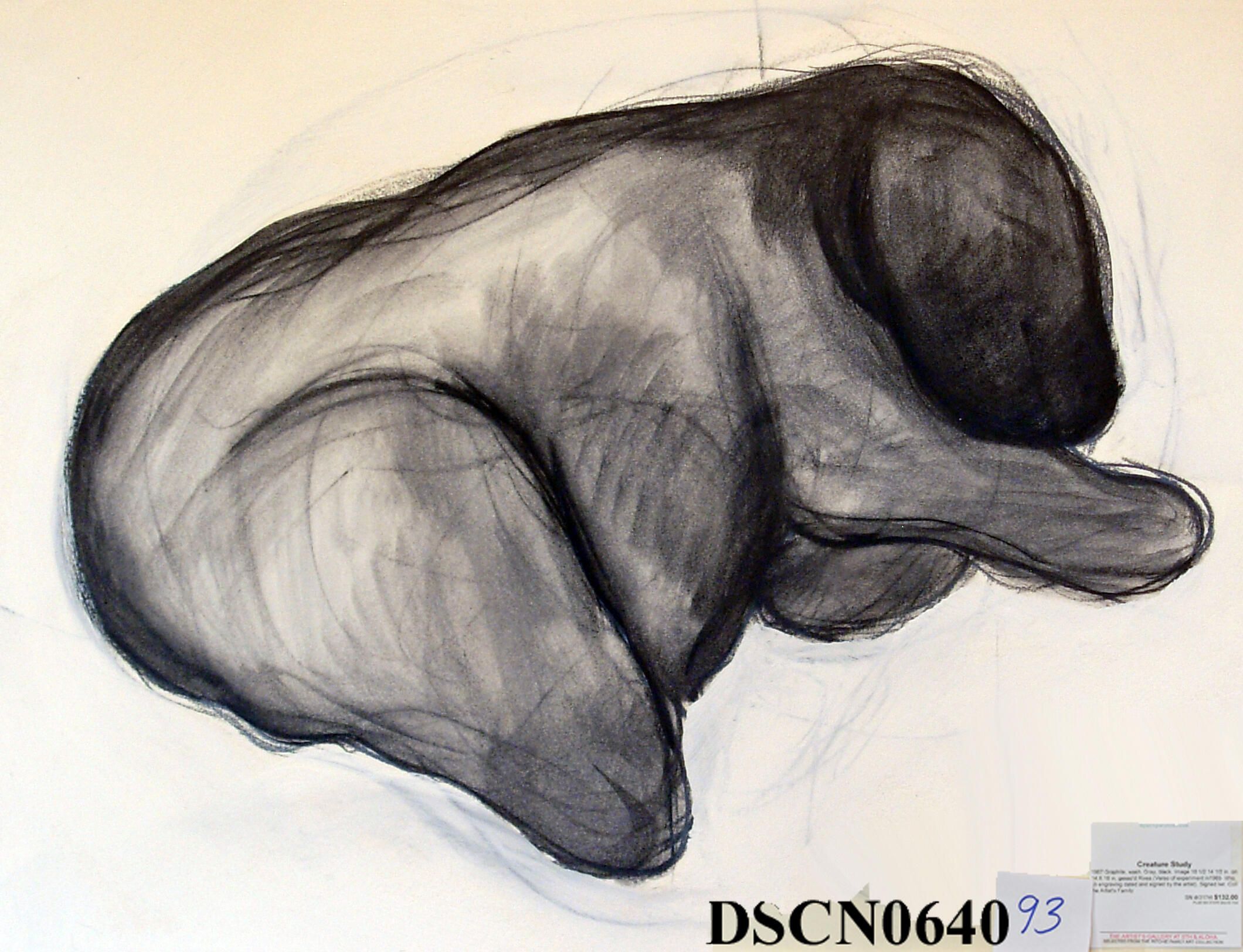 Graphite and wash. Gray and black. Image 10 1/2" x 14 1/2" on 14" x 18" ges'soed Rives BFK paper. Signed lower right.Inscription/Signature/Marks