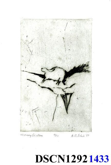 Intaglio. Black and white. Image 6" x 4" on 11" x 8 3/4" Rives BFK paper. Signed lower right.Made/Created