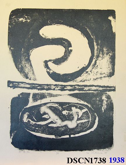 Lithograph. Black and white. Image 16" x 12", printed to edge of stone on 18 1/2" x 14 3/4" white Cover (sulphite) paper.Made/Created