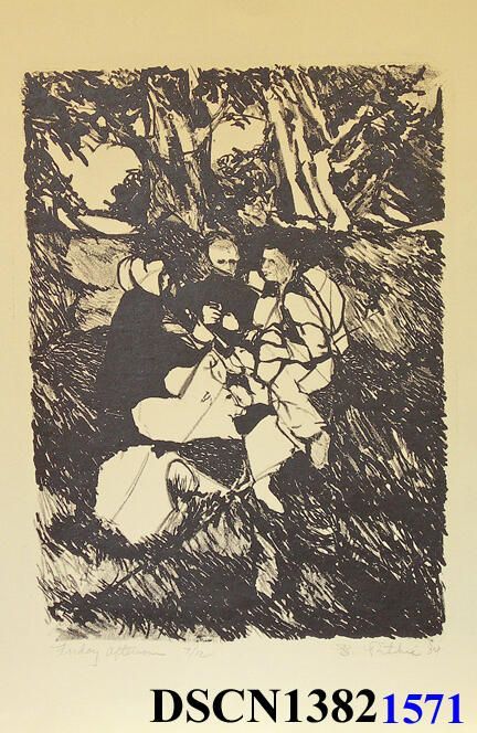 Lithograph. Black and white. Image 10 1/2" x 8" on 13 3/4" x 10" Hot Press Buff Text (Sulphite) paper. Signed lower right.Type of Print
