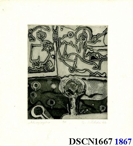 Intaglio. Black and white. Image 6" x 4" on 7 1/2" x 7" Rives BFK paper. Signed lower right.Made/Created