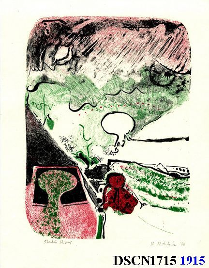 Lithograph. Green, red and black. Image 8" x 5 1/2" on 10" x 8" Rives BFK paper. Signed lower right.Made/Created