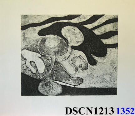 Intaglio, collagraph plate. Black and white. Image 12" x 14" on 17" x 20" Rives BFK paper. Signed lower right.Made/Created