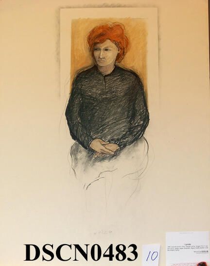 Colored pencil. Gray, orange and ochre. Image 22" x 11" on 26" x 20" beige (sulphite) paper. Signed middle bottom.Inscription/Signature/Marks