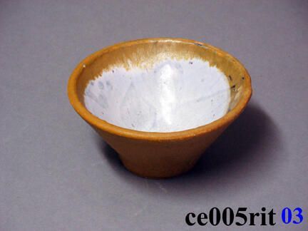 Mid-fired. Ochre-colored glaze. Object 2 1/16" x 4 1/4" x 4 1/4".Made/Created