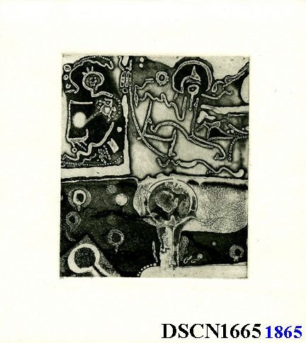Intaglio. Black and white. Image 6" x 4" on 7 1/2" x 7" Rives BFK paper.Made/Created