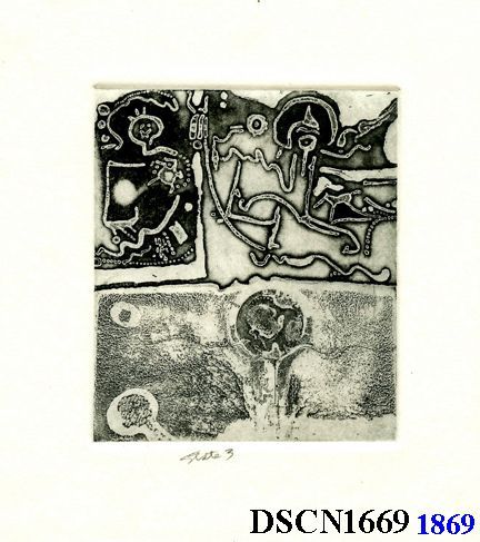 Intaglio. Black and white. Image 6" x 4" on 7 1/2" x 7" Rives BFK paper.Made/Created