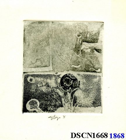 Intaglio. Black and white. Image 6" x 4" on 7 1/2" x 7" Rives BFK paper.Made/Created