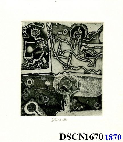 Intaglio. Black and white. Image 6" x 4" on 7 1/2" x 7" Rives BFK paper. Signed lower right.Made/Created