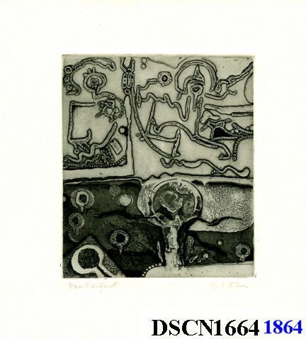 Intaglio. Black and white. Image 6" x 4" on 7 1/2" x 7" Rives BFK paper. Signed lower right.Made/Created