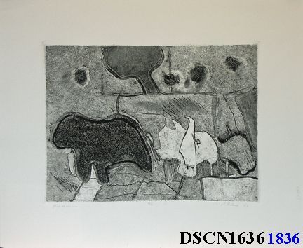 Intaglio. Black and white. Image 8" x 11" on 13 3/8" x 16 1/4" Rives BFK paper. Signed lower right.Artwork Details
