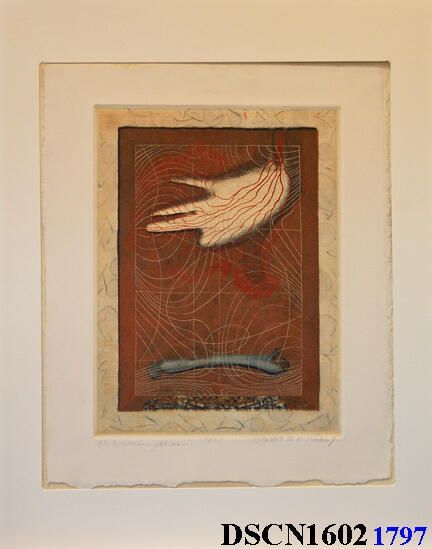 Intaglio. Black, brown, red, ochre and blue. Image 12" x 9" on 15" x 12" Arches Cover paper. Signed lower right.Made/Created