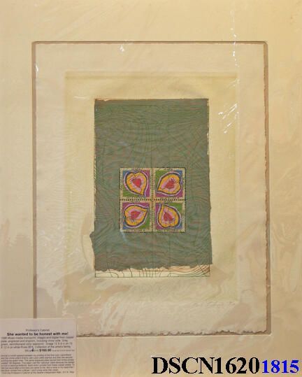 Intaglio, digital and chine colle. Gray, green, vermillion and colors from laserprinter. Image 12" x 9" on 15" x 12" on white Rives BFK paper.Artwork Details
