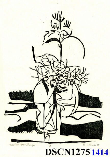 Relief. Black and white. Image 8" x 6" on 10" x 7 1/4" Japanese paper. Signed lower right.Type of Print