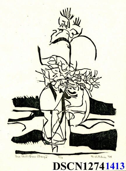 Relief. Black and white. Image 8" x 6" on 10" x 7 1/4" Japanese paper. Signed lower right.Type of Print