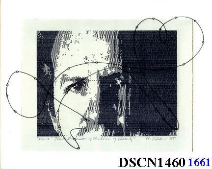 Computer graphic. Black and white. Image 11" x 14" on Hors Commerce newsprint paper; edition on Rives BFK Journal paper; Stonehinge tan paper; paper and Chronar (mylar overlay hand-drawn in ink with template). Signed lower right.Made/Created