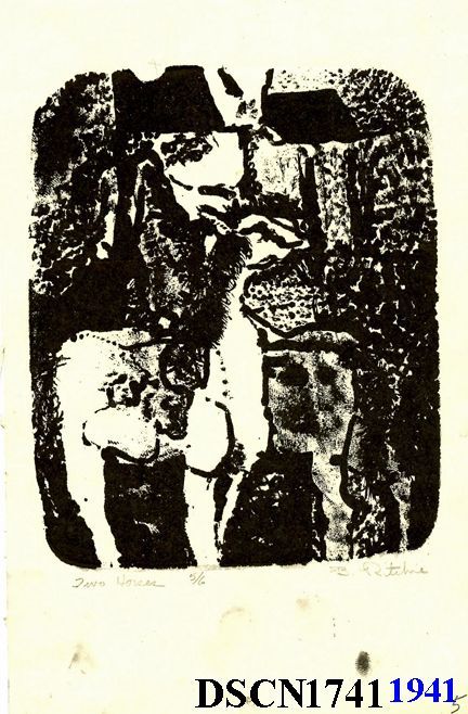 Lithograph. Black and white. Image 6" x 5" on 9" x 5 3/4" Hot Press Cover (Sulphite) paper. Signed lower right.Made/Created