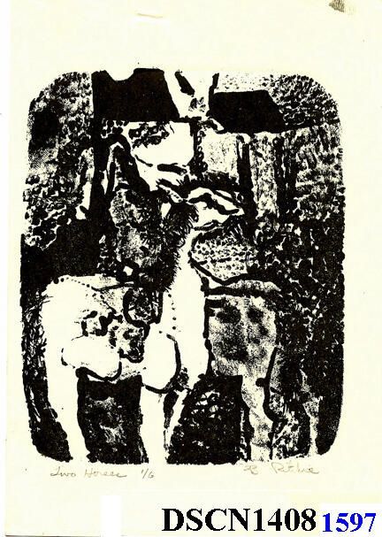 Lithograph. Black and white. Image 6" x 5" on 9" x 5 3/4" hot press cover (sulphite) paper. Signed lower right.Type of Print