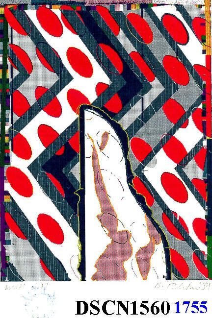 Screenprint. Red, black and yellow. Image 15" x 45" on white and toned mixed papers of Rives BFK, Torinoko, Shogun, Mexican handmade and Nepalese handmade papers. Signed lower right in image area.Made/Created