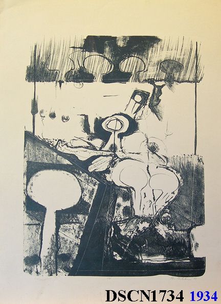 Lithograph. Black and white. Image 16" x 12" on 22" x 15" buff Basingwerk Parchment paper. Signed lower right.Made/Created