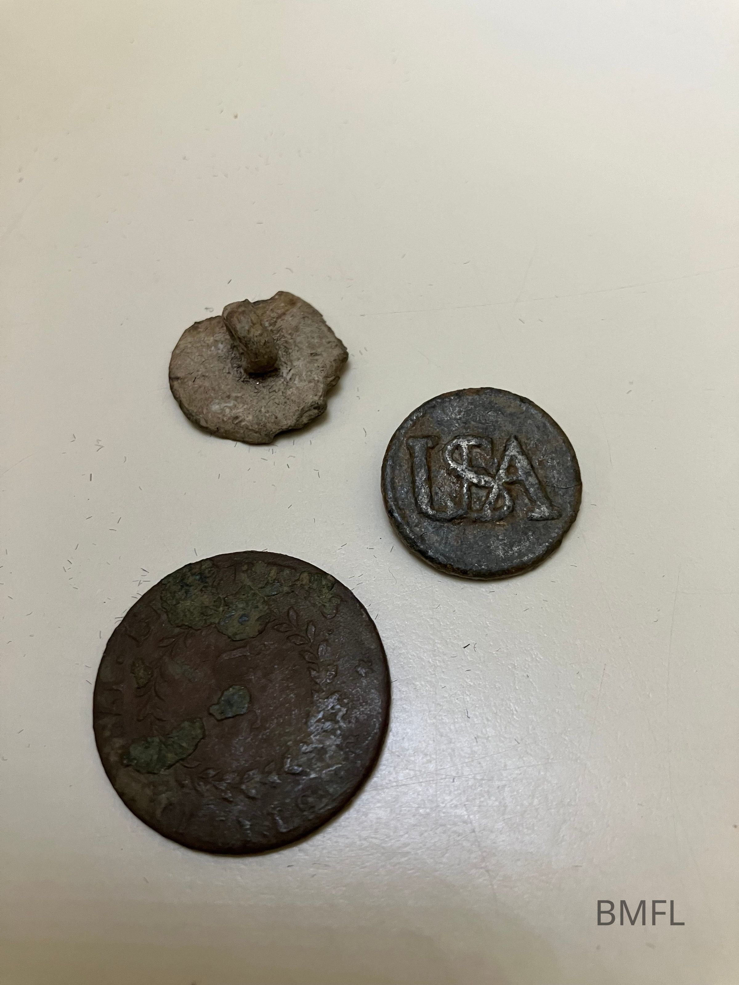 Sources selling antique buttons as well as the Art Museum of Colonial Williamsburg, (https://www.amrevmuseum.org/virtualexhibits/among-his-troops/pages/continental-army-buttons) identify this as a button from the uniform of a Continental Army soldier during the Revolutionary War.Collection