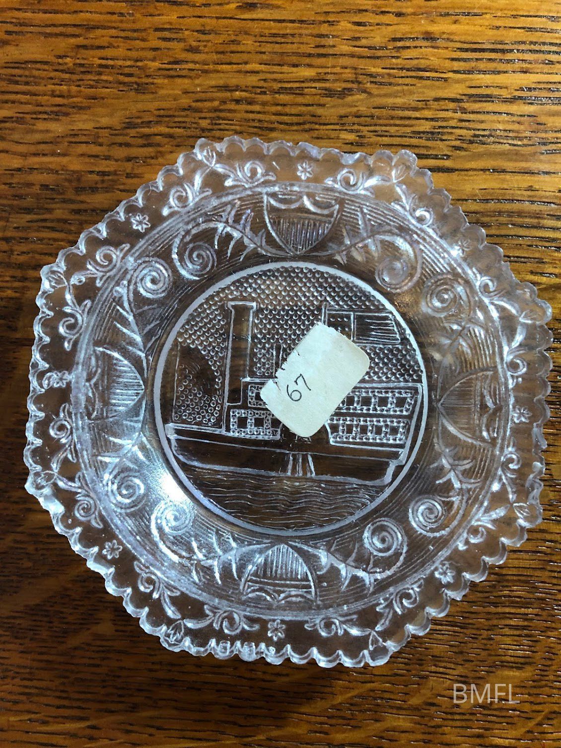 An article published in January of 1951 announced a donation to the Bixby Library from the late Josephine Meneely: her collection of glass cup plates, along with glass paperweights. The article explained cup plates as follows: "Cup plates were not coasters as those unfamiliar with antiques sometimes believe. Inn the 1820s and 1830s it was considered the proper thing to drink tea from the saucer instead of the handleless cup. When the tea was poured into the saucer, the cup was placed on a small cup plate of glass, sometimes of china, to avoid soiling the tablecloth. the fashion changed when cups again were made with handles. Cup plates were smaller than honey plates or preserve dishes, about three inches in diameter."Collection