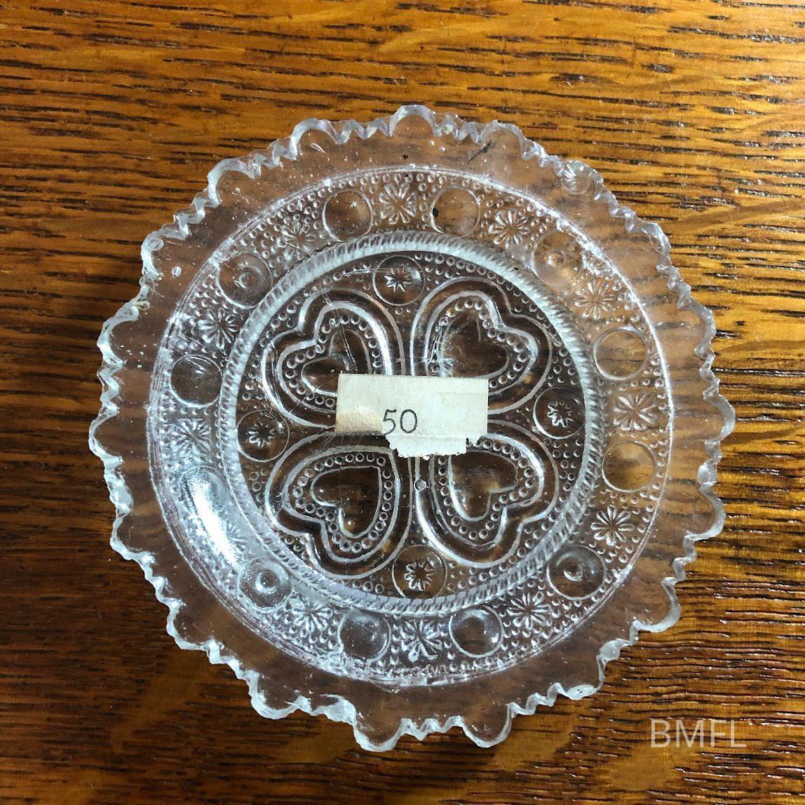 Clear glass cup plate with a pressed design. RareUse