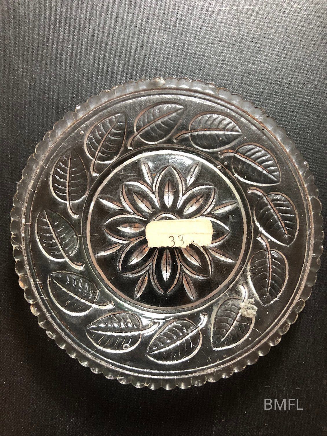 An article published in January of 1951 announced a donation to the Bixby Library from the late Josephine Meneely: her collection of glass cup plates, along with glass paperweights. The article explained cup plates as follows: "Cup plates were not coasters as those unfamiliar with antiques sometimes believe. Inn the 1820s and 1830s it was considered the proper thing to drink tea from the saucer instead of the handleless cup. When the tea was poured into the saucer, the cup was placed on a small cup plate of glass, sometimes of china, to avoid soiling the tablecloth. the fashion changed when cups again were made with handles. Cup plates were smaller than honey plates or preserve dishes, about three inches in diameter."Collection
