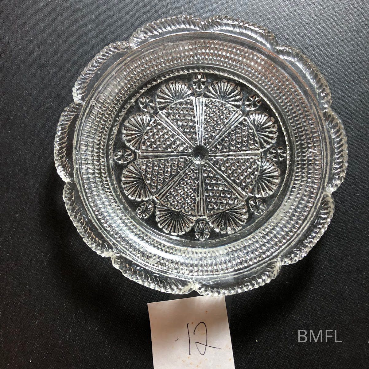 An article published in January of 1951 announced a donation to the Bixby Library from the late Josephine Meneely: her collection of glass cup plates, along with glass paperweights. The article explained cup plates as follows: "Cup plates were not coasters as those unfamiliar with antiques sometimes believe. Inn the 1820s and 1830s it was considered the proper thing to drink tea from the saucer instead of the handleless cup. When the tea was poured into the saucer, the cup was placed on a small cup plate of glass, sometimes of china, to avoid soiling the tablecloth. the fashion changed when cups again were made with handles. Cup plates were smaller than honey plates or preserve dishes, about three inches in diameter."Collection