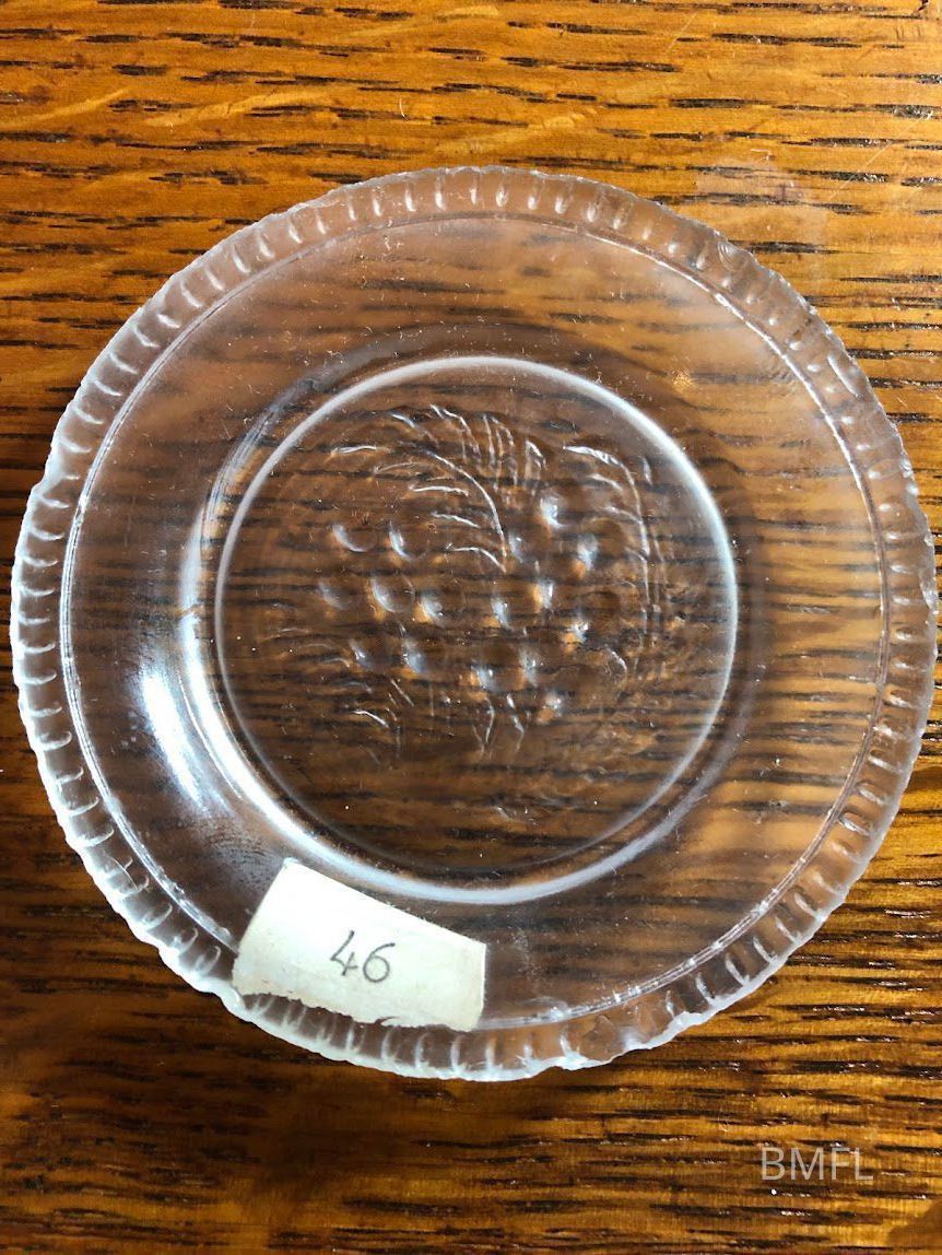 An article published in January of 1951 announced a donation to the Bixby Library from the late Josephine Meneely: her collection of glass cup plates, along with glass paperweights. The article explained cup plates as follows: "Cup plates were not coasters as those unfamiliar with antiques sometimes believe. Inn the 1820s and 1830s it was considered the proper thing to drink tea from the saucer instead of the handleless cup. When the tea was poured into the saucer, the cup was placed on a small cup plate of glass, sometimes of china, to avoid soiling the tablecloth. the fashion changed when cups again were made with handles. Cup plates were smaller than honey plates or preserve dishes, about three inches in diameter."Collection