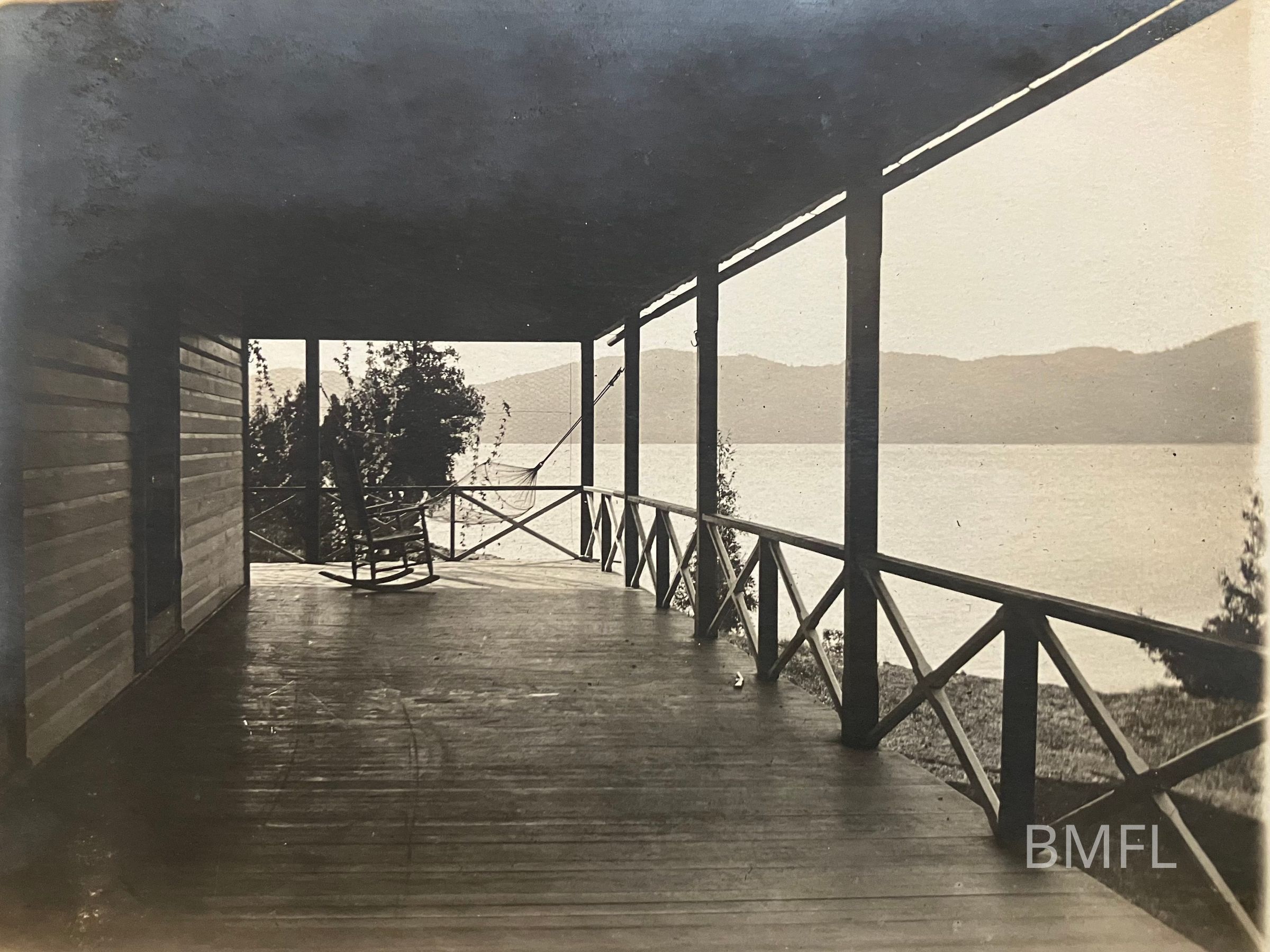 A porch with a rocker overlooking Lake ChamplainPhotograph Details