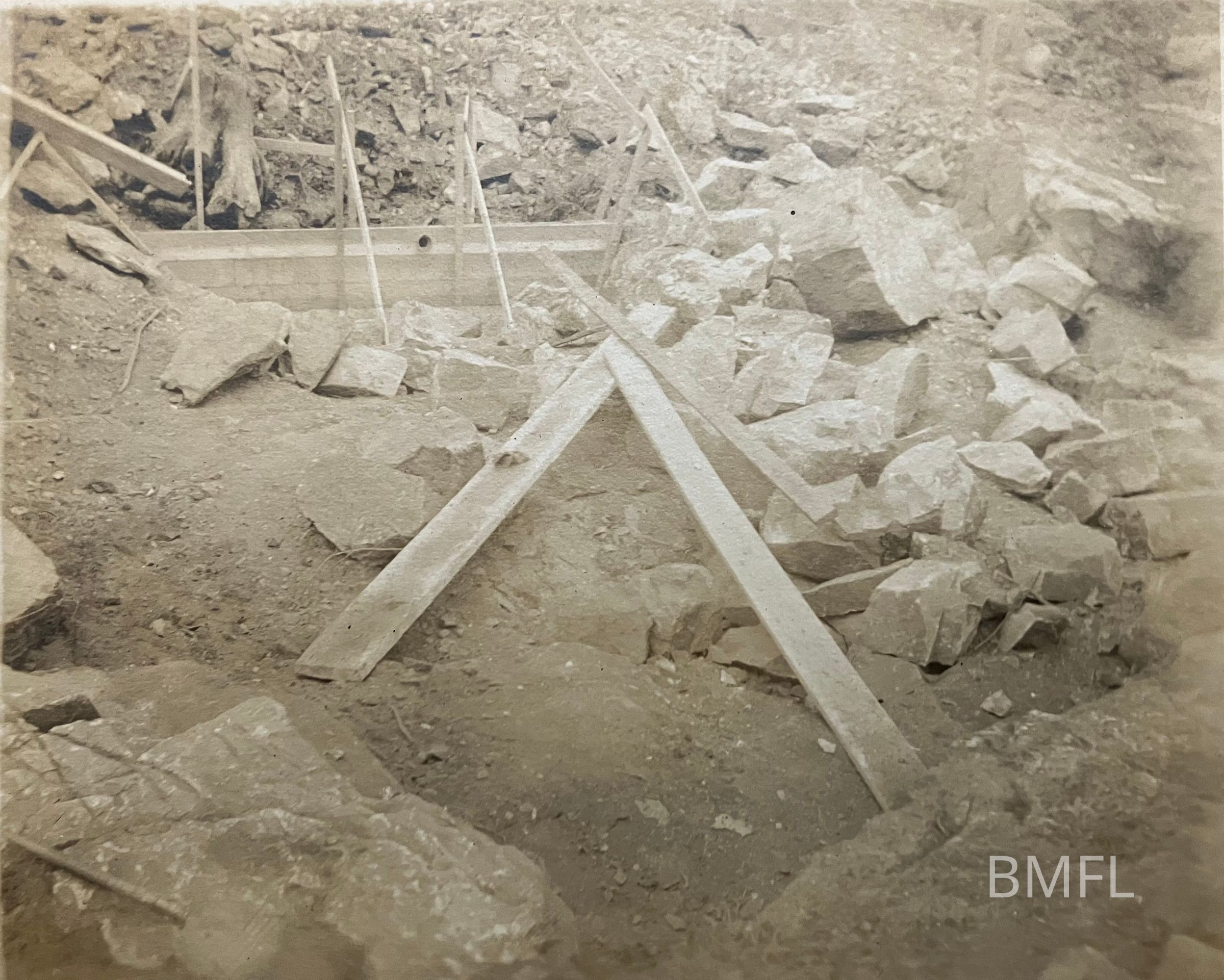 Lumber and stone -- future foundation for a cottage at Fort CassinPhotograph Details