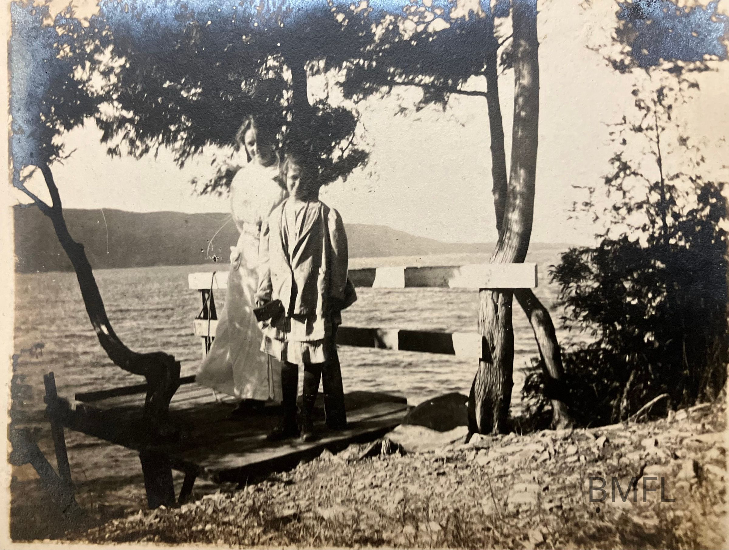 Woman and a girl standing on a deck overlooking Lake ChamplainPhotograph Details
