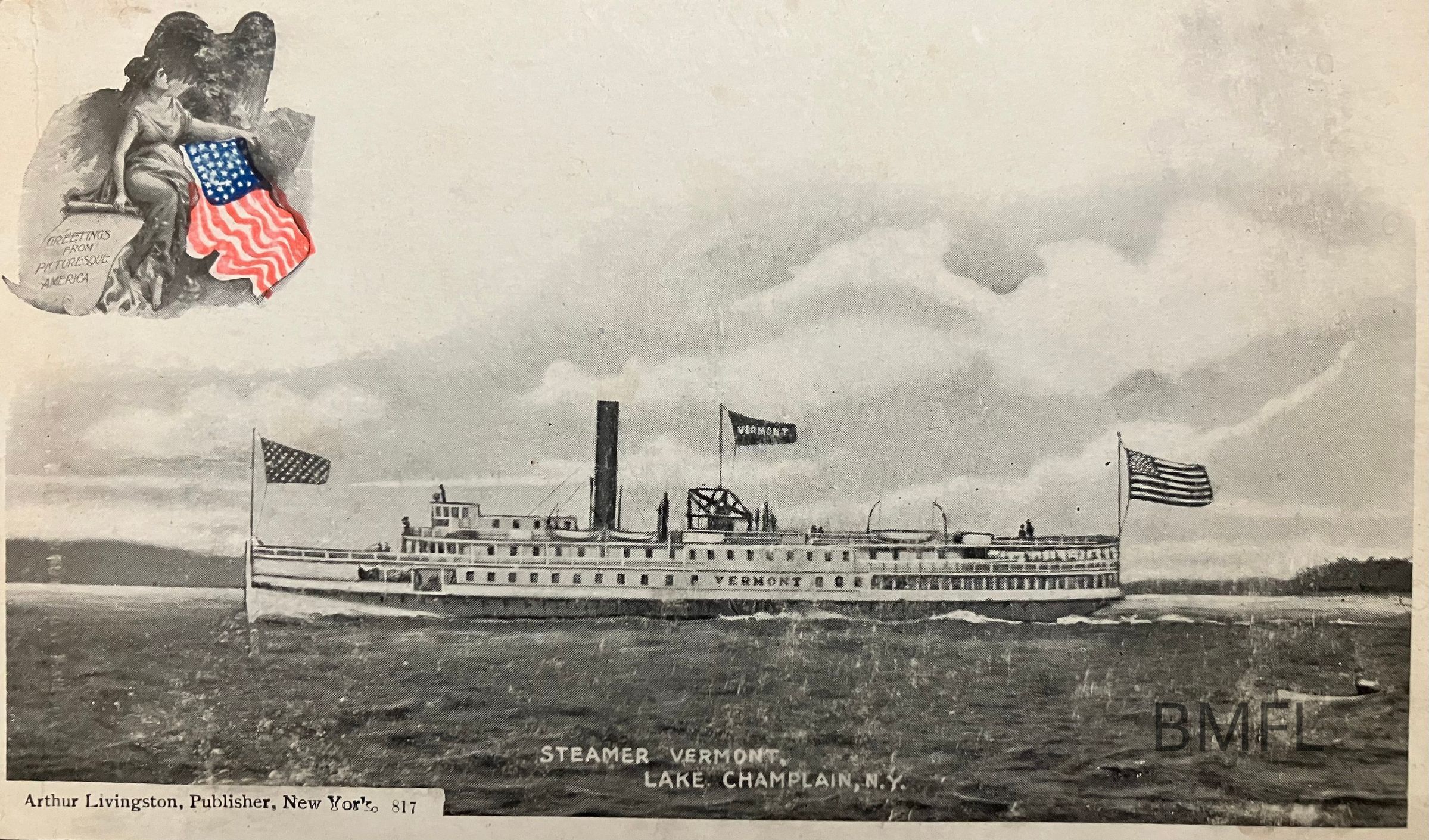 A postcard show a multi-decked steams on Lake ChamplainPhotograph Details