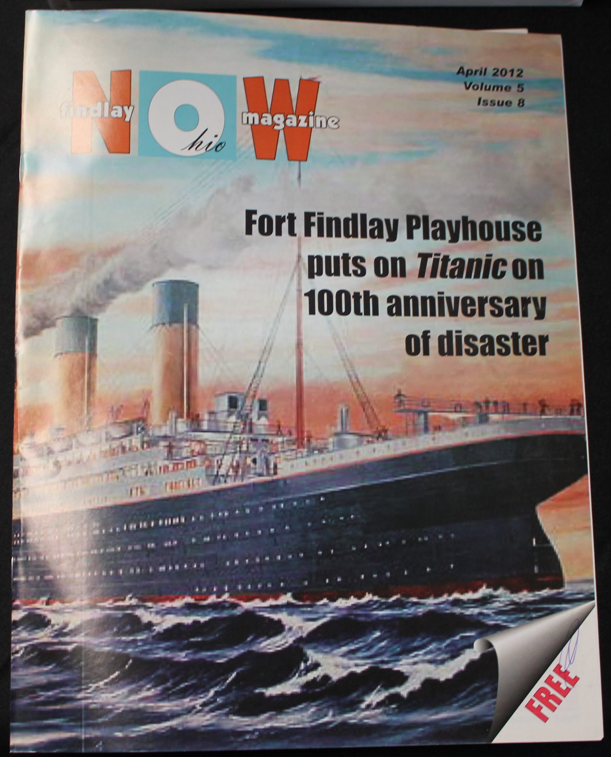 The front cover of this issue has a drawing of the titanic with the name of the magazine in the top left corner and the caption reading "Fort Findlay Playhouse puts on Titanic on 100th anniversary of disaster" in the middle right. The top right of the cover shows the publication date, volume and issue numbers.Collection