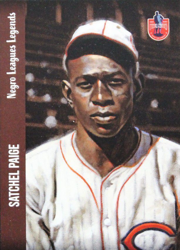 1931 Satchel Page baseball trading card. Front shows an image of Satchel Page in uniform with "Satchel Page" and "Negro Leagues Legends" on the left side. Back shows statistics and a description of Page's activity, and "Card: 134."Collection