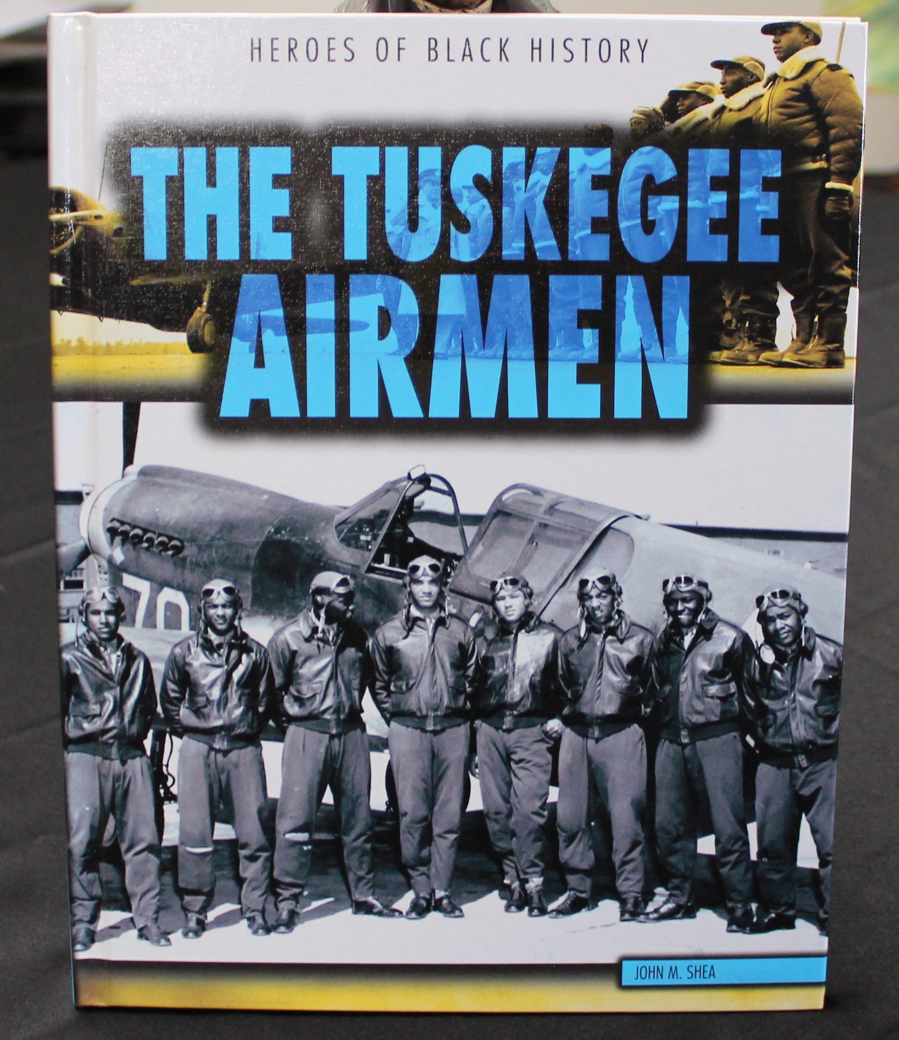 The front cover of the book shows pictures of the Tuskegee airmen lined up in front of an airplane.Collection