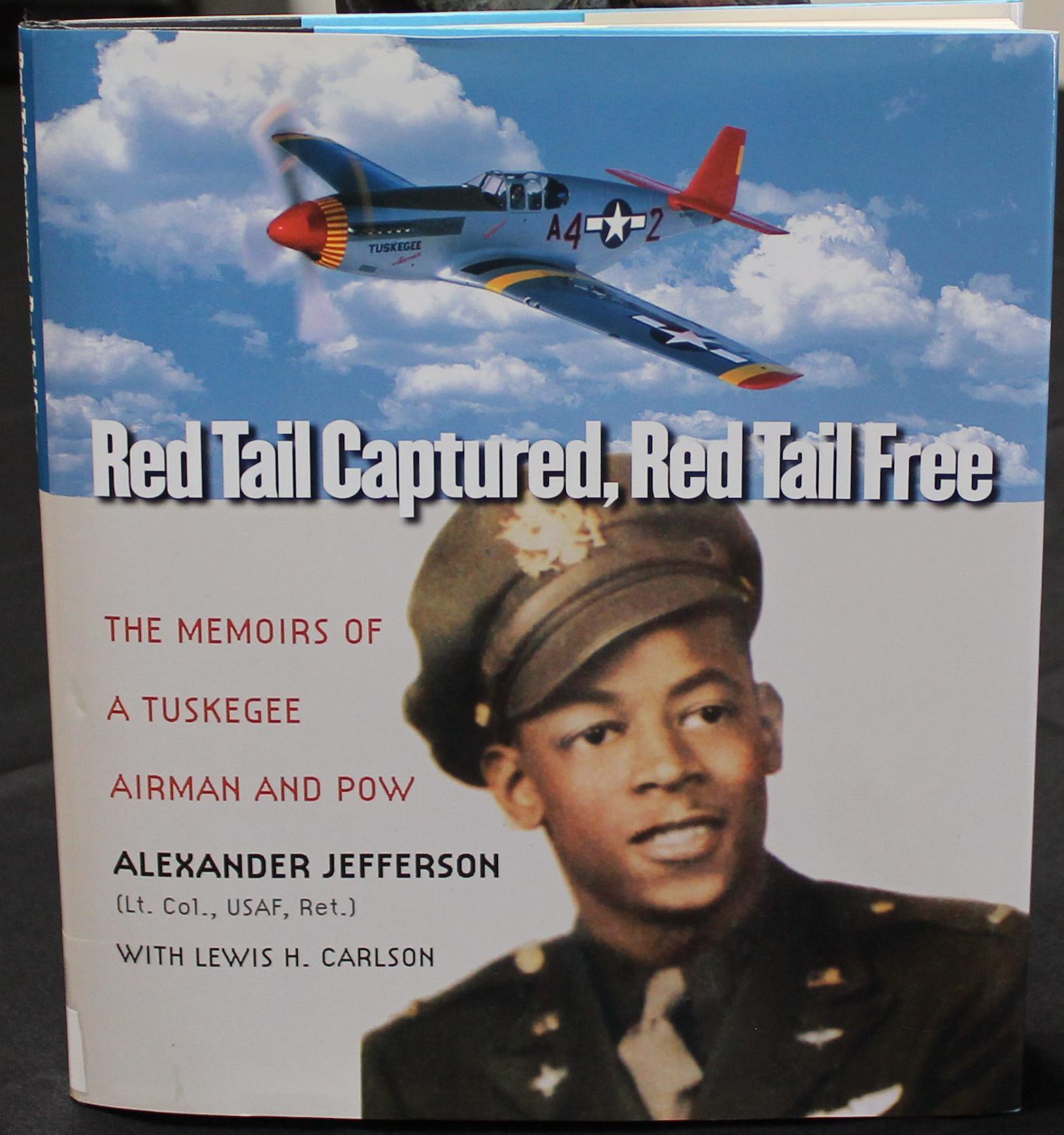 The front cover of the book has the title, and a picture of Alexander Jefferson and an airplane with "Tuskegee" written on it.Collection