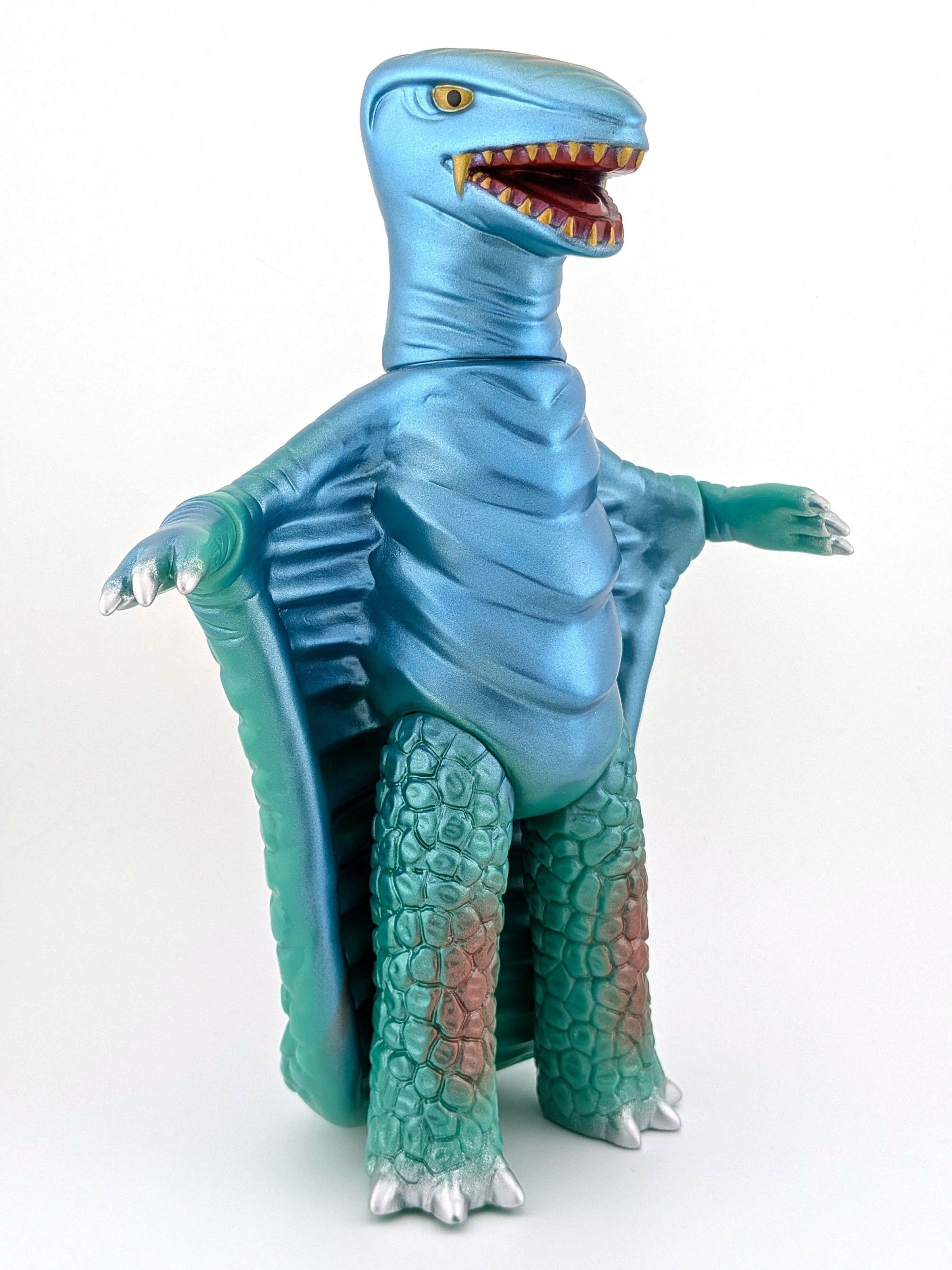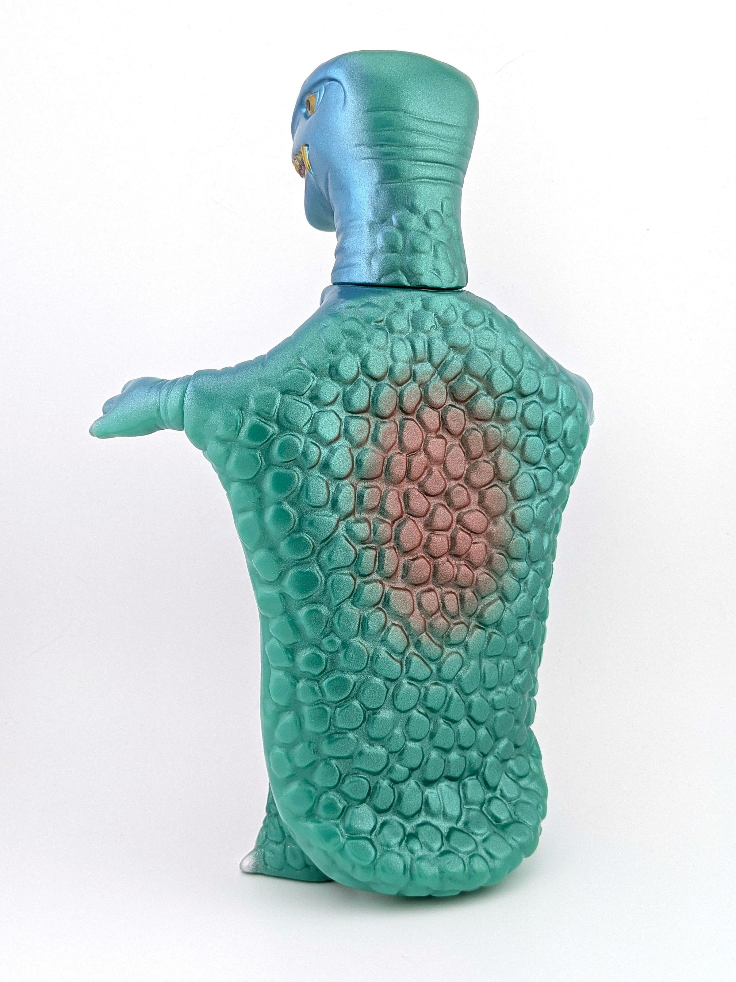 Green vinyl with green, blue, silver, and red paint